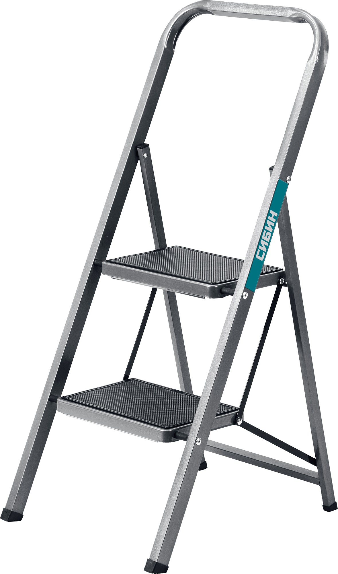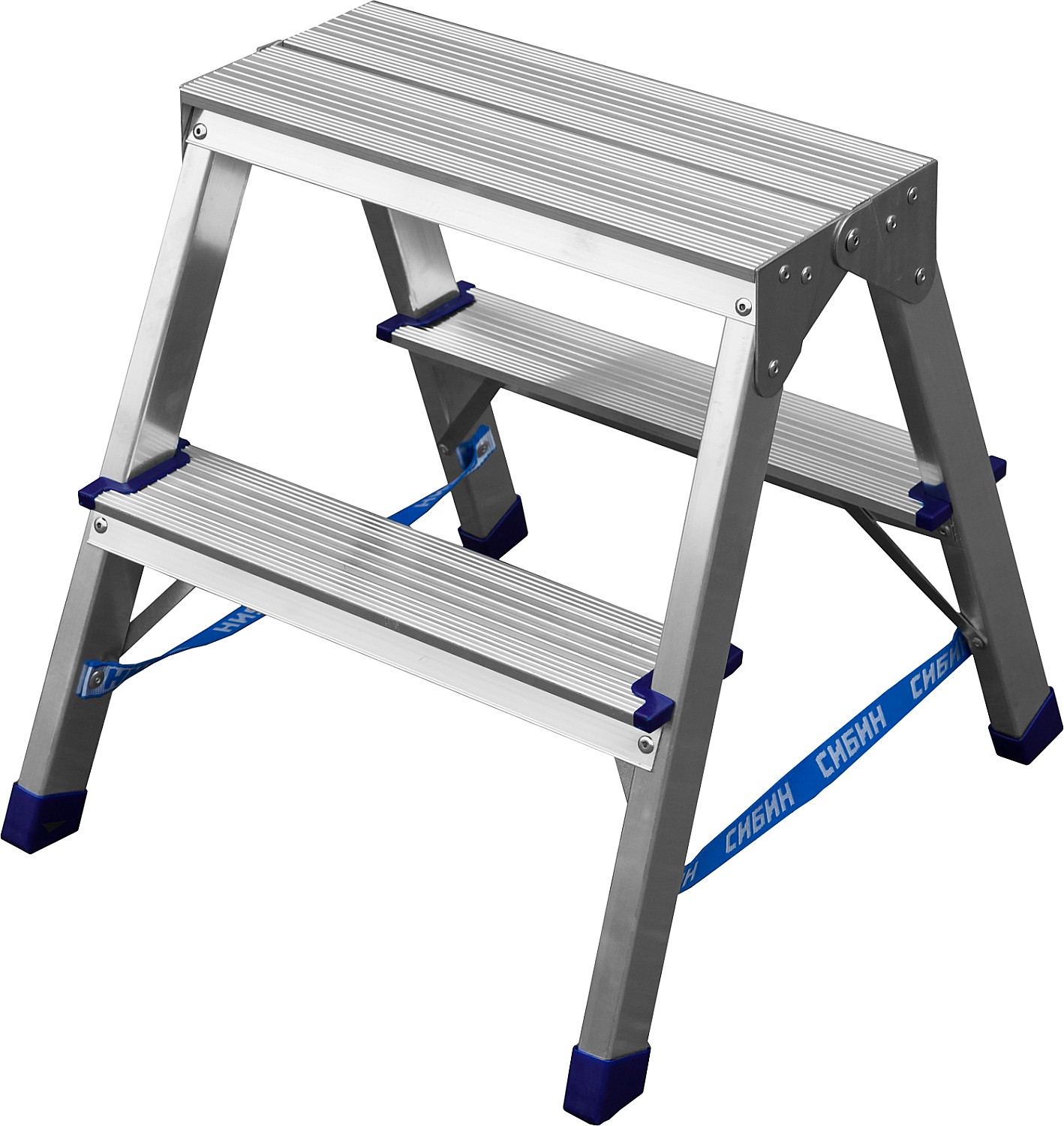 СИБИН 2 ступени, алюминиевая, двухсторонняя стремянка (38825-02)