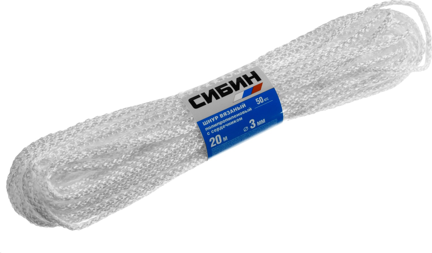 СИБИН 3 мм, 20 м, вязаный, с сердечником, белый, полипропиленовый шнур (50253)