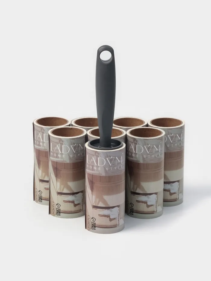 Ролик для одежды со сменными блоками LaDо́m, 8 шт. по 50 листов, эргономичная ручка, винтовая намотка
