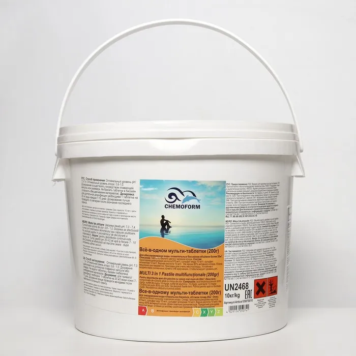 Мульти-таблетки для воды бассейна "Всё в одном" (200 гр), 10 кг