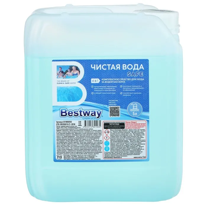 Комплексное жидкое средство Bestway SAFE «Чистая вода 4 в 1» для ухода за водой бассейна, 5 л