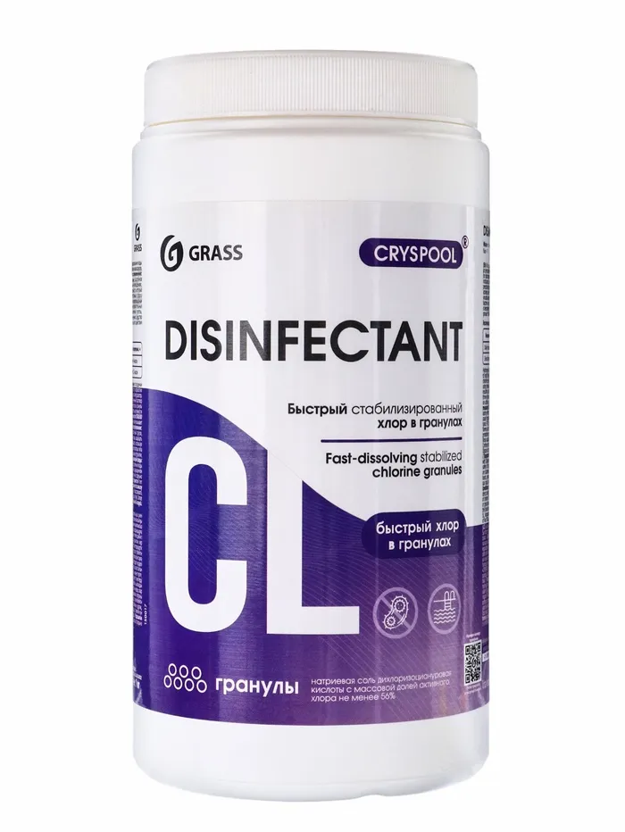 Средство дезинфицирующее для воды CRYSPOOL быстрый стабилизированный хлор в гранулах, 1 кг