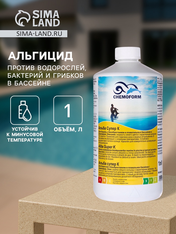 Альгицид Альба Супер К, против водорослей, бактерий и грибков в бассейне, 1 л