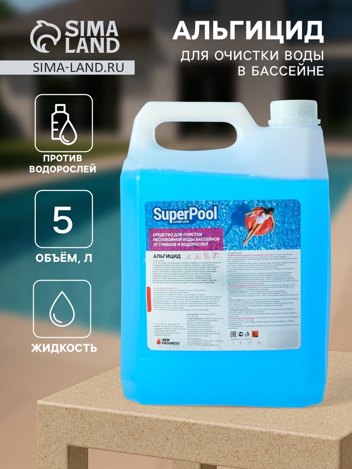 Средство для обработки бассейнов Альгицид, "Супер - Пул", от грибков и водорослей, 5 л