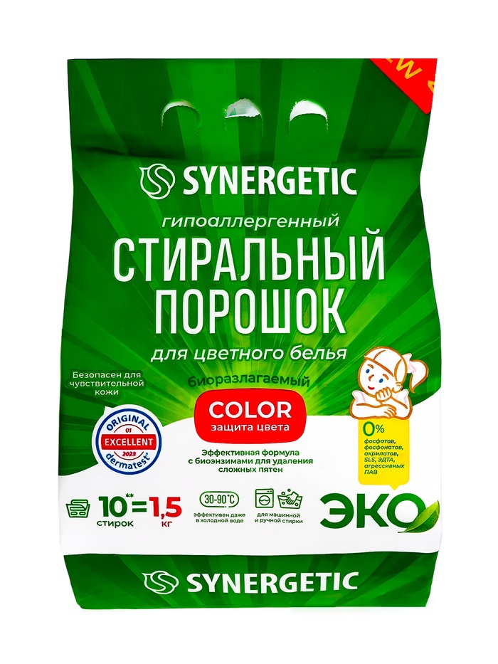 Стиральный порошок Synergetic Color, гипоаллергенный, 1.5 кг