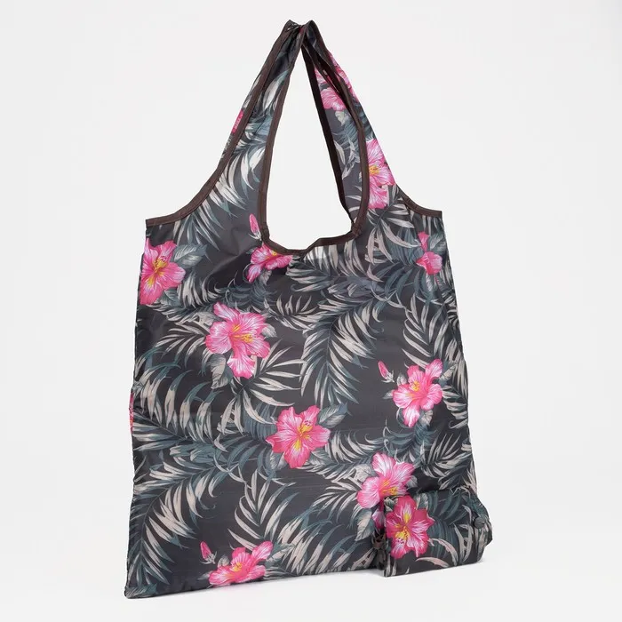 Сумка хозяйственная без застежки, складная, цвет чёрный/розовый