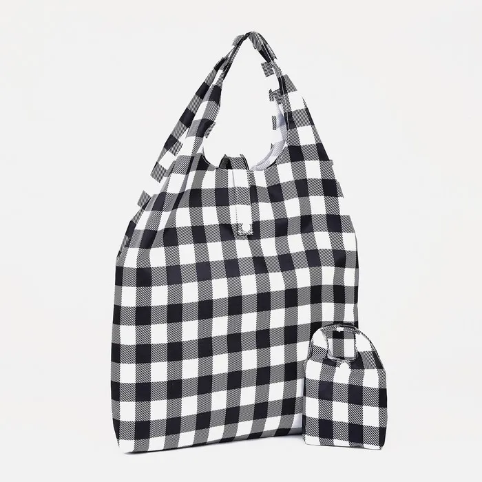 Сумка хозяйственная на кнопке, складная, цвет чёрный/белый