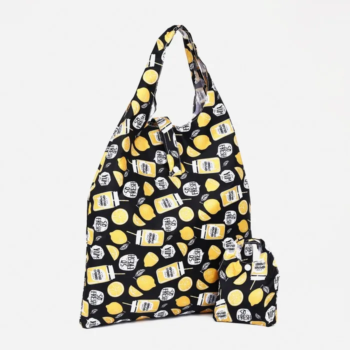 Сумка хозяйственная на кнопке, складная, цвет чёрный/жёлтый