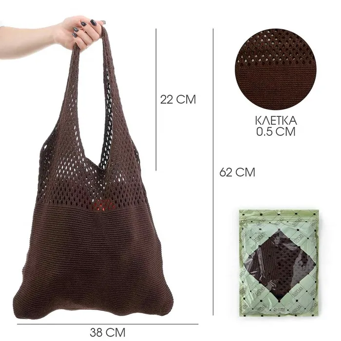 Сумка-авоська хозяйственная, клетка 0.5 см, коричневая