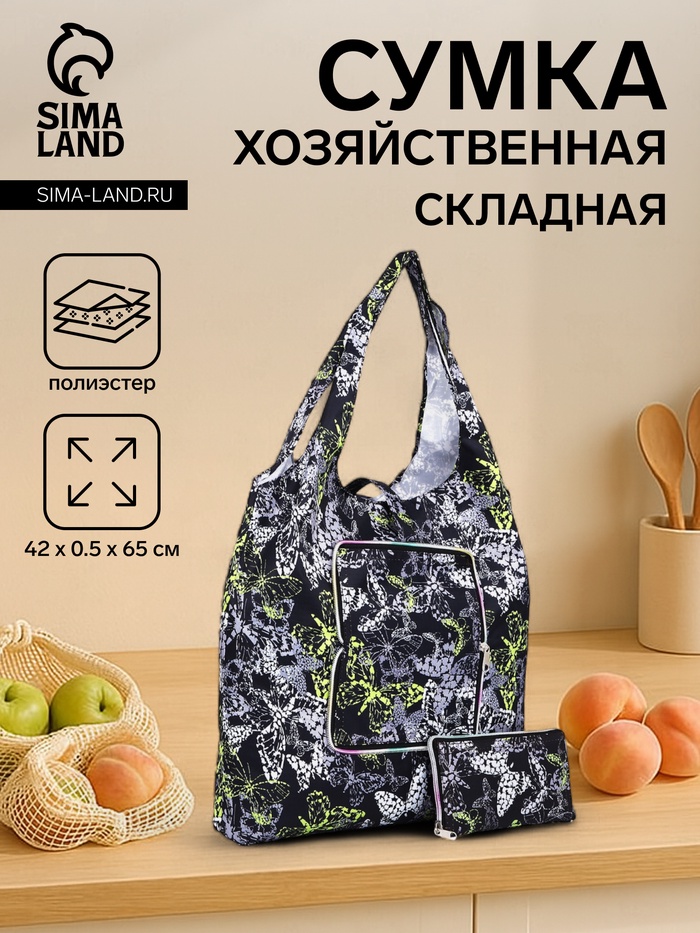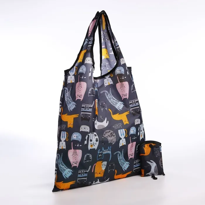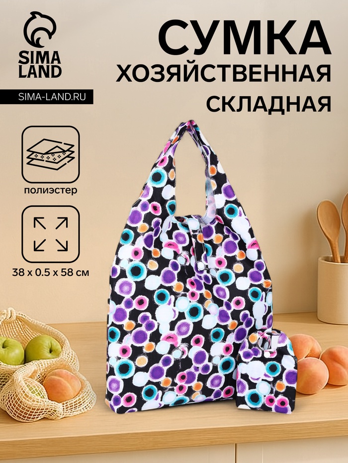 Сумка хозяйственная на кнопке, складная, цвет чёрный/разноцветный