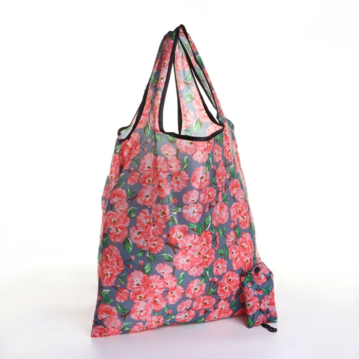 Сумка хозяйственная без застёжки, складная, цвет серый/розовый