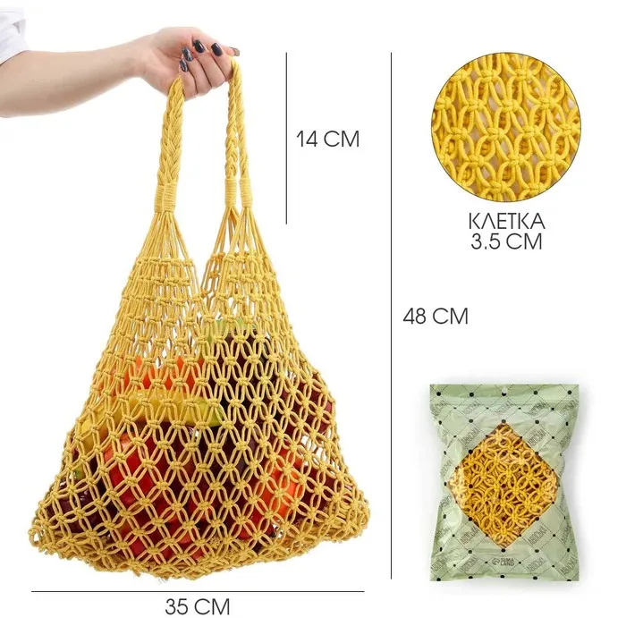 Сумка-авоська хозяйственная, клетка 3.5 см, жёлтая