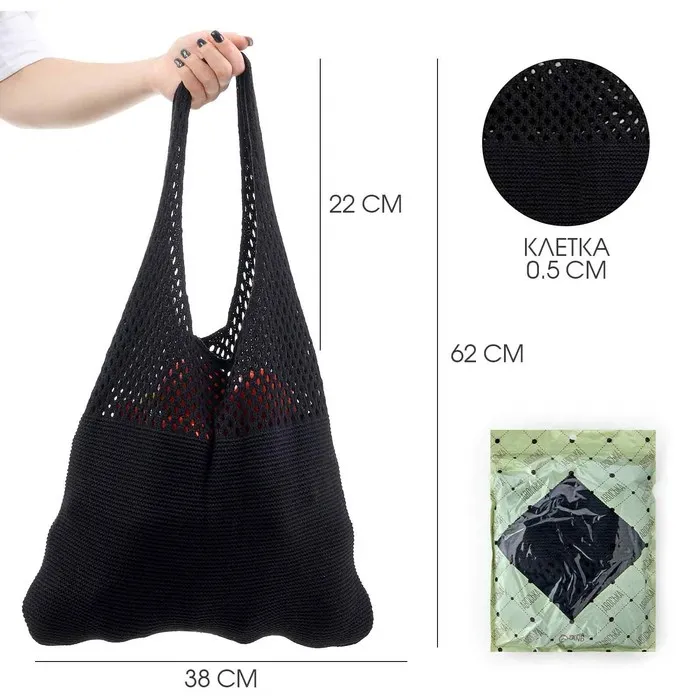 Сумка-авоська хозяйственная, клетка 0.5 см, чёрная