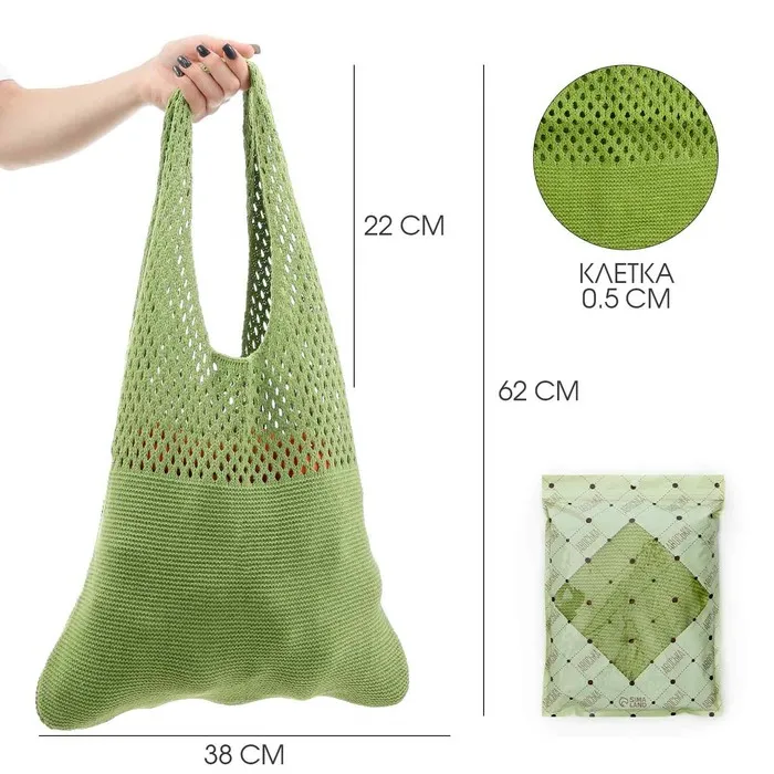 Сумка-авоська хозяйственная, клетка 0.5 см, зелёная