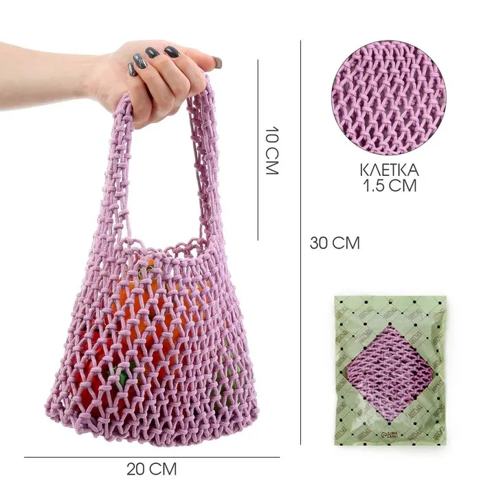 Сумка-авоська хозяйственная, клетка 1.5 см, лиловая