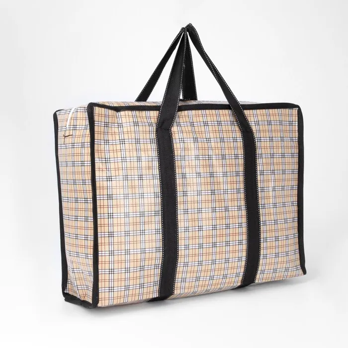 Сумка хозяйственная на молнии, 198 л, цвет белый/чёрный