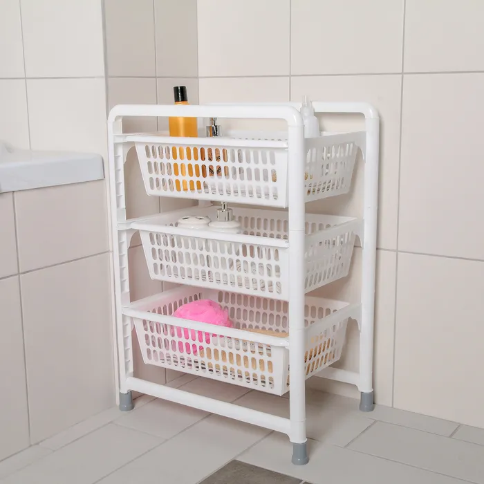 Этажерка напольная, 3-х секционная, с выдвижными лотками, белая