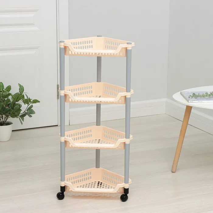 Этажерка угловая 4-х секционная, на колёсиках, МИКС
