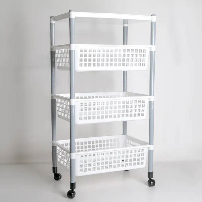 Этажерка напольная на колесиках 4-х секционная, МИКС