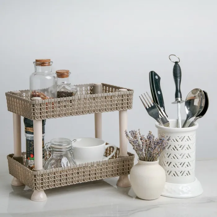 Этажерка настольная 2 яруса «Плетение», 24×15×20 см, МИКС