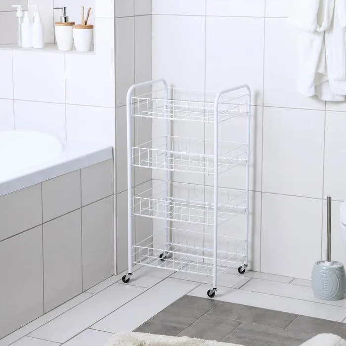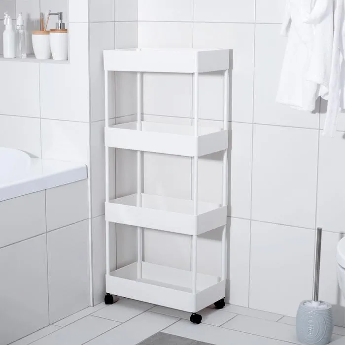 Этажерка напольная, 4-х секционная, на колёсиках, 40×21.7×90 см, белая