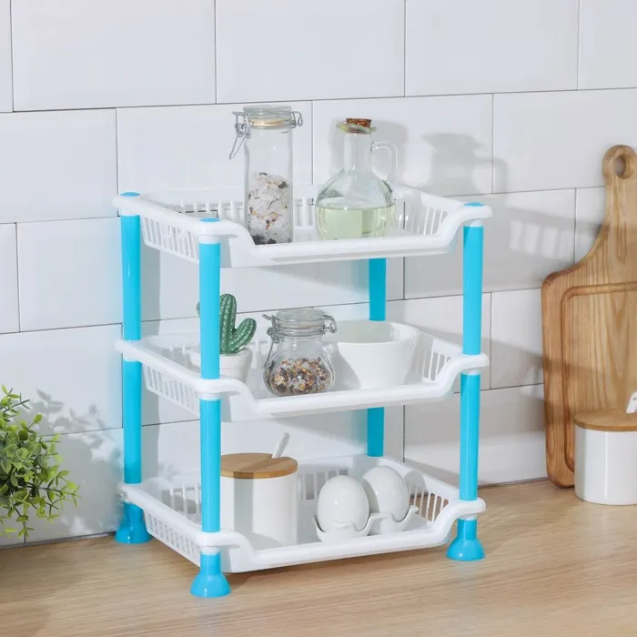 Этажерка настольная 3-х ярусная «Контраст», 21.5×28.5 см, голубая