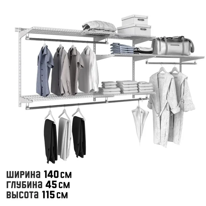 Материалы, из которых изготовлены наши системы, гарантируют долговечность и устойчивость к нагрузкам. Простая установка и возможность изменения конфигурации делают их привлекательными для любого дома. В нашем каталоге вы найдете все необходимое для создания идеальной гардеробной: от базовых конструкций до дополнительных аксессуаров, таких как крючки, полки и разделители.