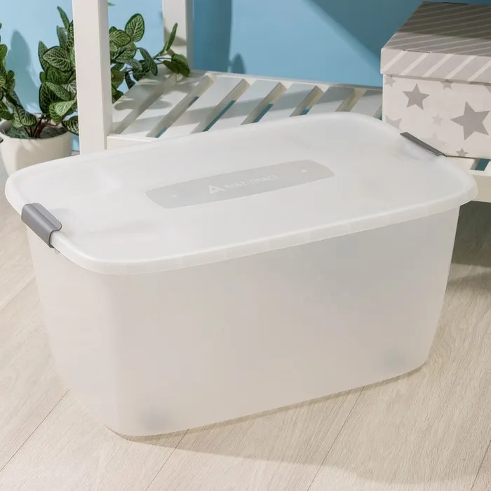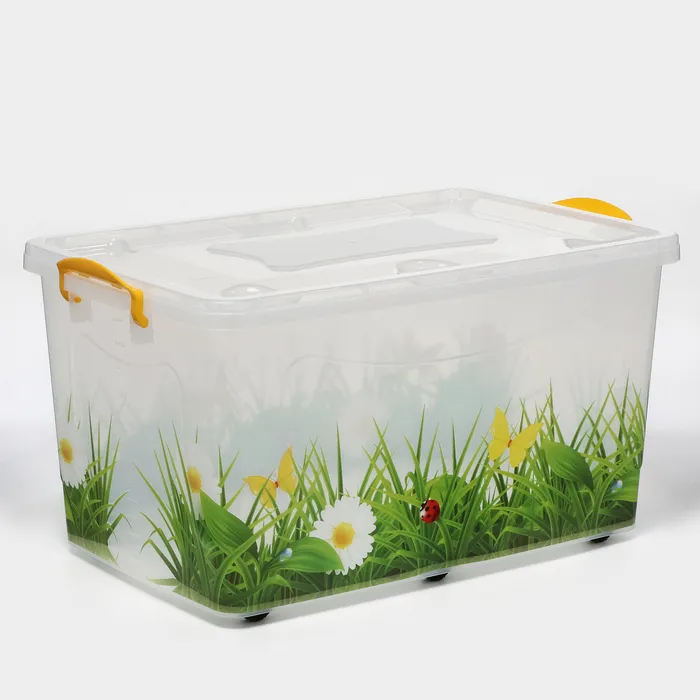 Контейнер для хранения с крышкой, 50 л, на колёсах, 61×39×32 см, прозрачный