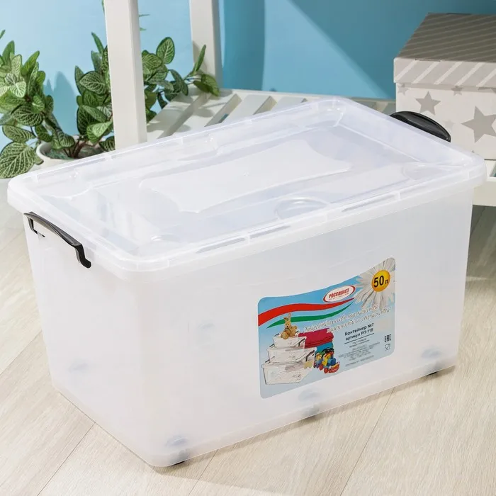 Контейнер для хранения с крышкой, 50 л, 61×39×32 см, на колёсиках, прозрачный