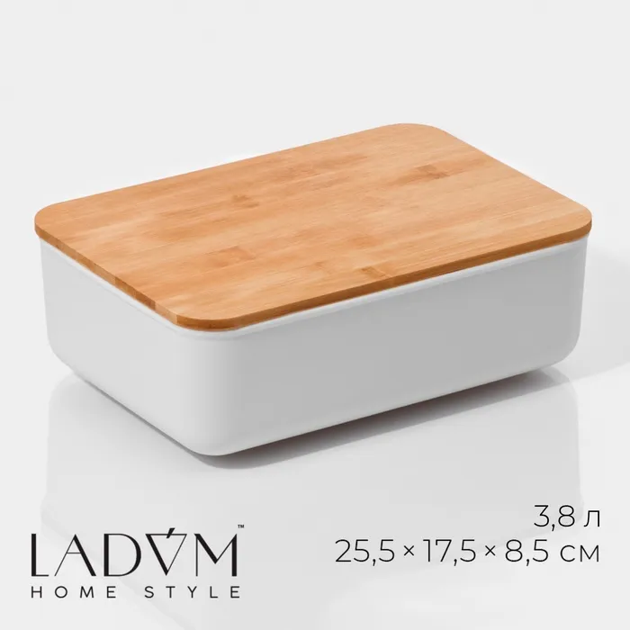 Контейнер для хранения с крышкой LaDо́m «Натурэль», 3.8 л, 25.5×17.5×8.5 см, пластик, белый