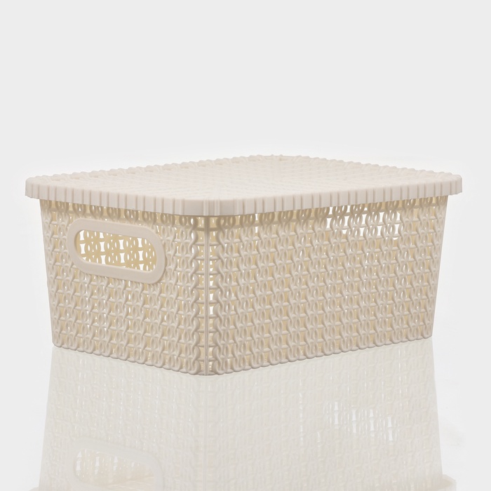 Корзина для хранения с крышкой «Плетенение», 24,5×18×10 см, цвет МИКС