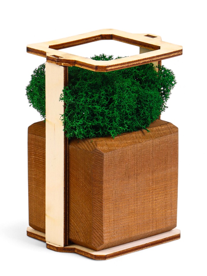 Кашпо - композиция «Бриовуд», 10×6×6 см, деревянное, со стабилизированным мхом