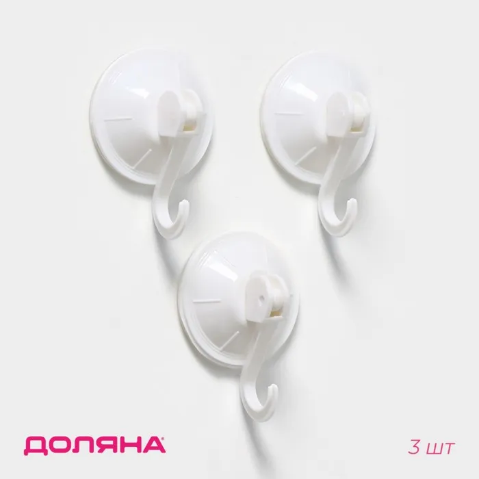 Крючки на вакуумной присоске Доляна «Классика», 3 шт., белые