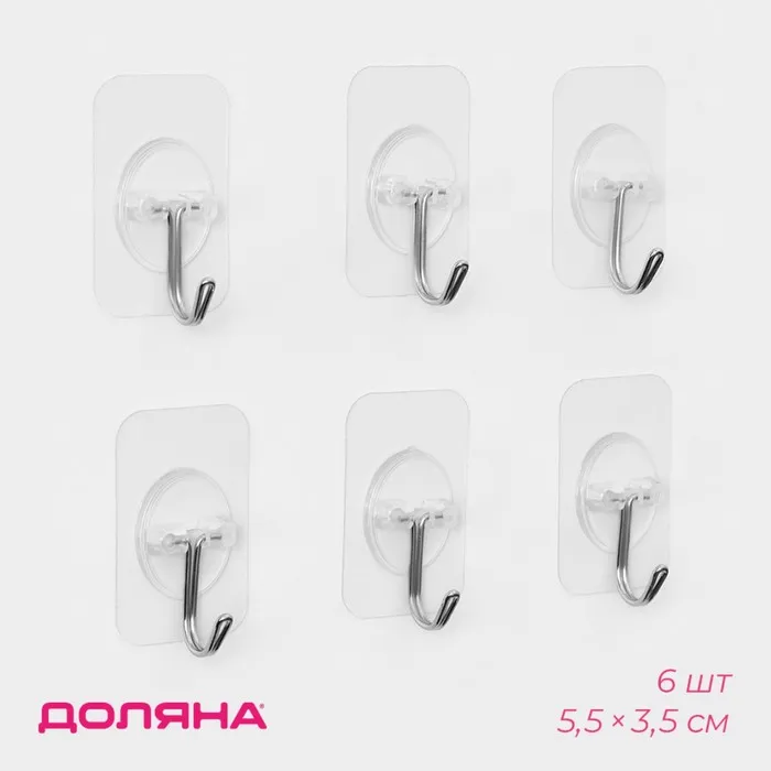 Крючки самоклеящиеся Доляна «Классика», 6 шт., прозрачные