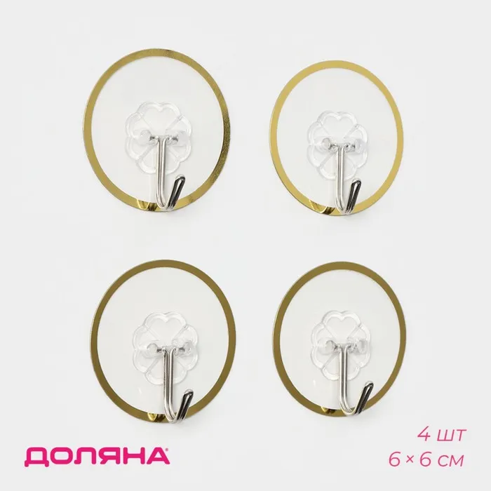 Крючки самоклеящиеся Доляна Gold, 4 шт., 6×6×2 см, прозрачные