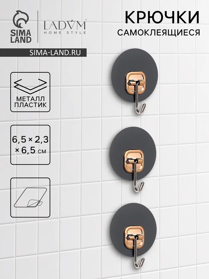Набор самоклеящихся крючков LaDо́m Gold, 3 шт., 6.5×2.3×6.5 см