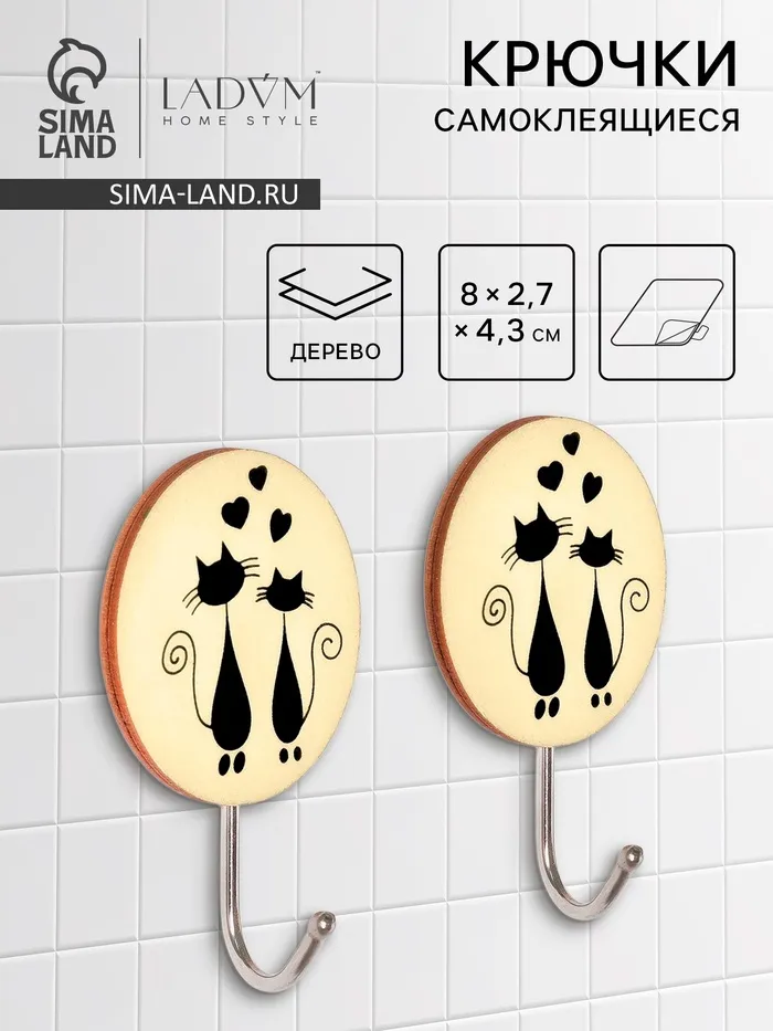 Набор самоклеящихся крючков LaDо́m Wooden animals, 2 шт., 8×2.7×4.3 см