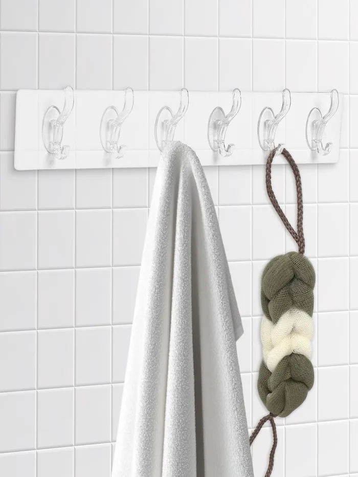 Крючки настенные самоклеящиеся, 6 крючков на общей гибкой прозрачной основе