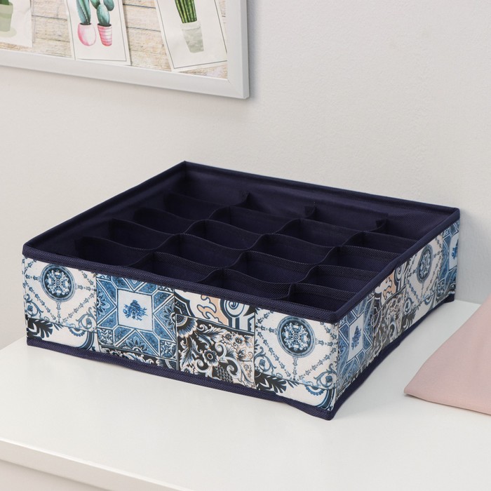 Органайзер для хранения белья Доляна «Мозаика», 24 отделения, 30×33×10 см, цвет синий