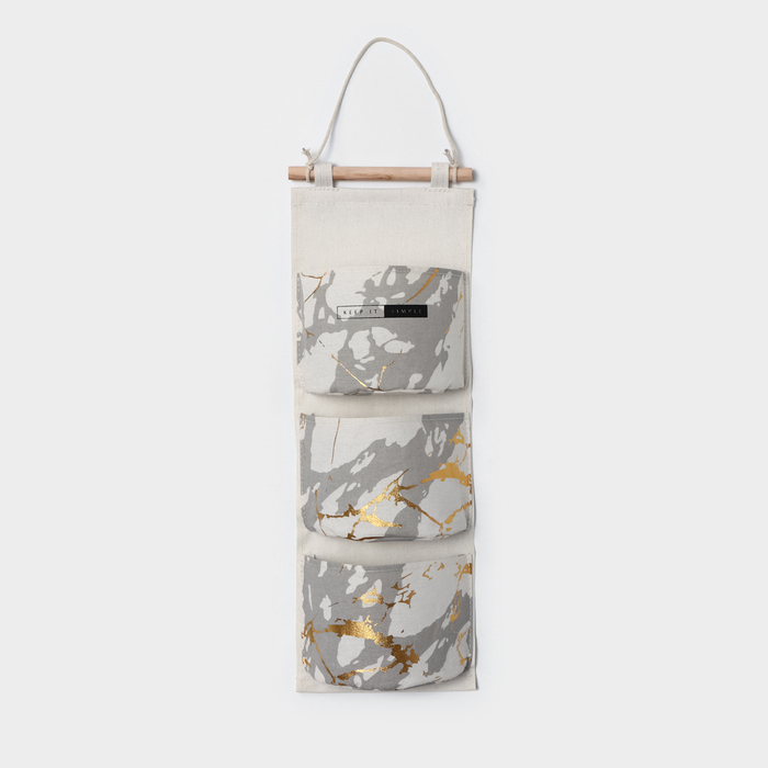 Органайзер подвесной с карманами Доляна «Мрамор», 3 отделения, 20×58 см, цвет бежевый