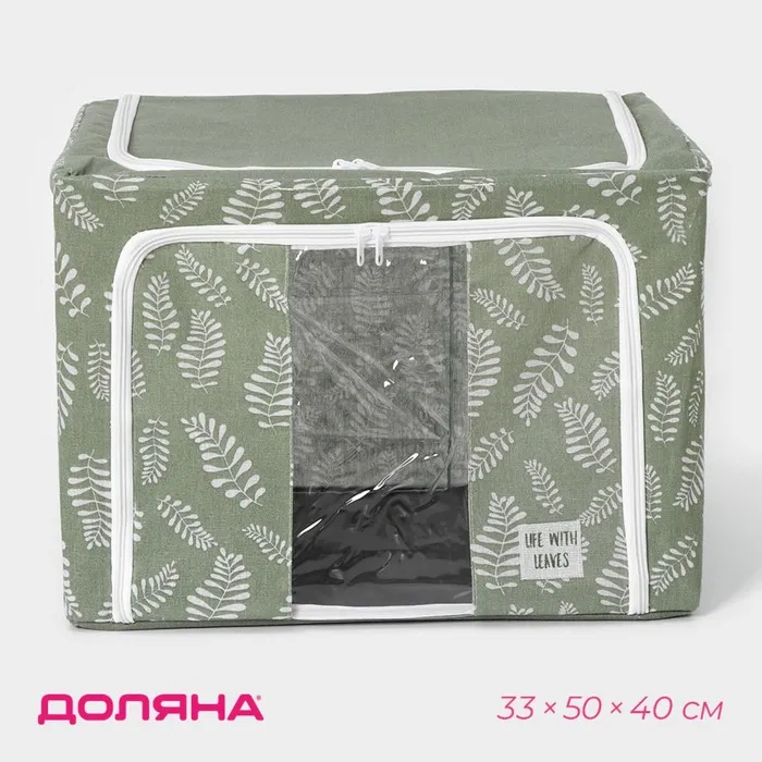 Кофр для хранения вещей Доляна Leaves, 50×40×33 см, 66 л, зелёный
