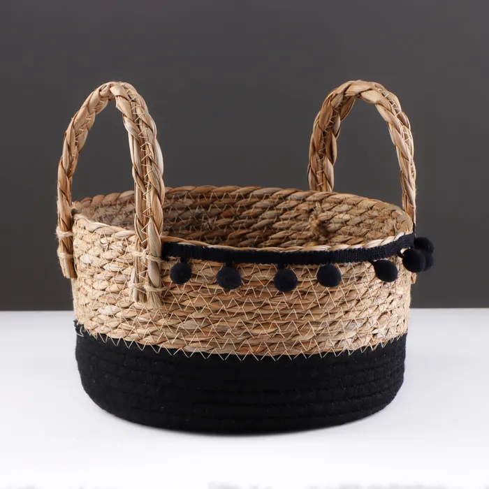 Корзина для хранения "Колумбия", с ручками, 24 х 24 х 13 см, натуральный, чёрный