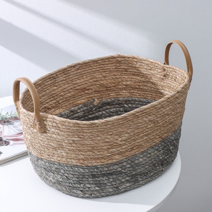 Корзина плетёная, 46×28×23/28 см, камыш, морские водоросли