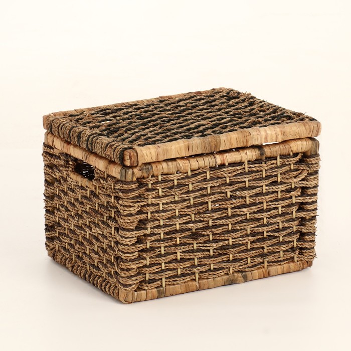 Корзина плетёная с крышкой «Прямоугольник», 44×34×30 см, камыш, морские водоросли