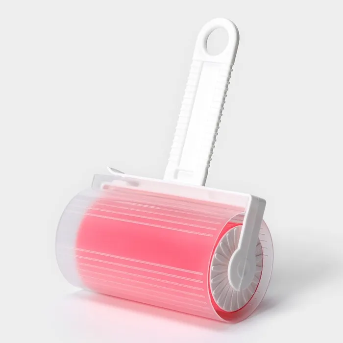 Ролик для чистки одежды в футляре силиконовый, 17×11×6 см, розовый