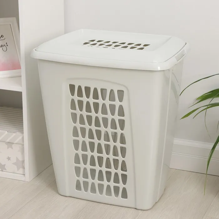 Корзина бельевая «Молетта», 60 л, 47,9×36,9×55 см, с крышкой, светло-серая