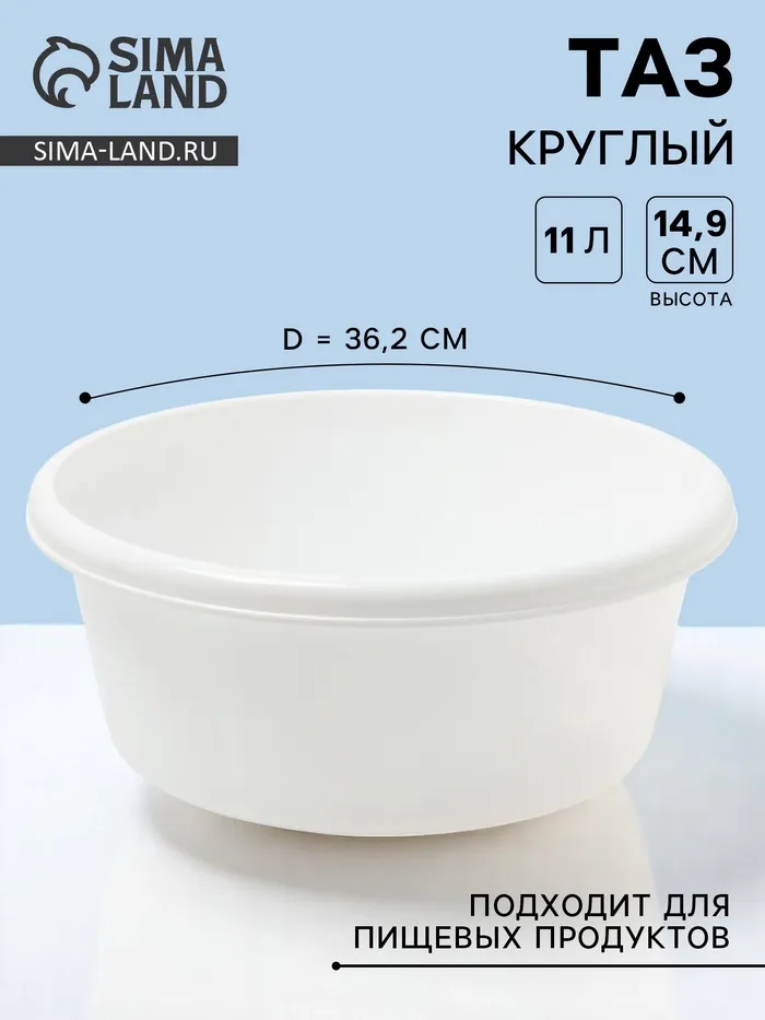 Таз круглый, 11 л, d=36.2 см, h=14.9 см, белый