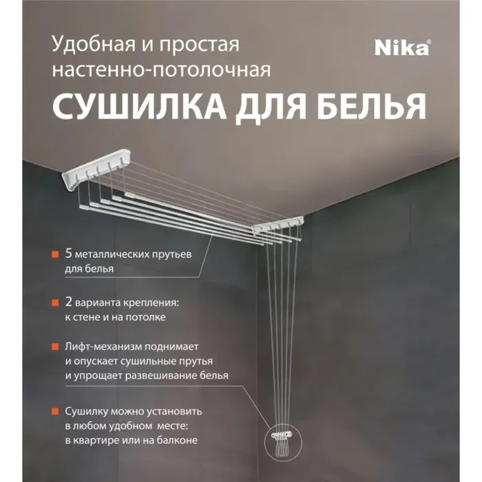 Сушилка для белья настенно-потолочная СНП 1.8, рабочая длина 9 м, цвет белый