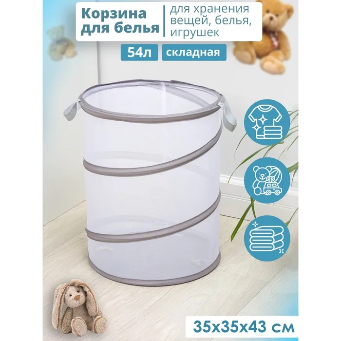 Корзина для белья складная Доляна, 35×35×43 см, серая