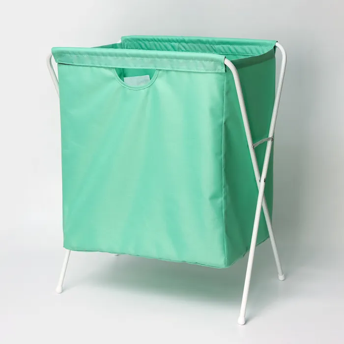 Корзина-мешок для белья на металлокаркасе, 53×39×62 см, мятная